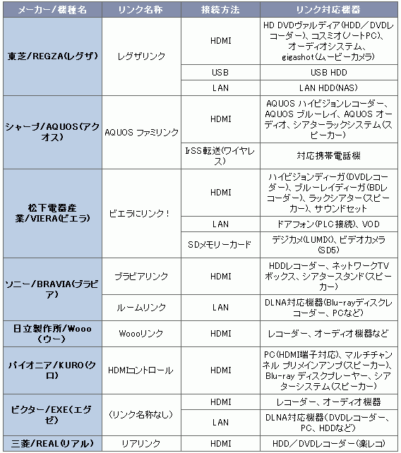 | レグザリンク | 東芝規格(CECベースか不明) | Wikipedia | メーカHP |